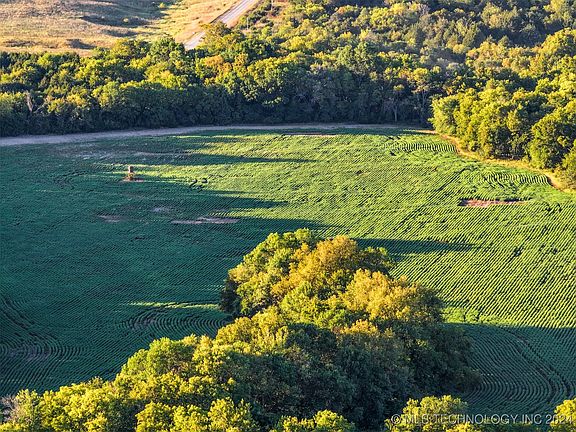 Introducing Legacy Ridge Ranch +/- 354-acre farm near Welch, Oklahoma. Features prime hunting ground, and it’s rare to see a high-caliber hunting farm like this, with the northern boundary bordering the Kansas state line. This parcel boasts mature oak timber and diverse topography, making it a haven for deer hunters. Also features a massive ridge line that spans most of its length, offering breathtaking views over the serene landscape. There are three wide-ranging bean fields heavily frequented by deer traveling between bedding areas and their primary food source. This farm has a rich history of agricultural production, further enhancing its appeal to investors. The centerpiece of this stunning property is a rustic-style hunting lodge. This +/- 3,200 sq. ft., two-story, five-bedroom, three-bathroom, all-steel frame home is perfect for hosting hunting camp or extended family gatherings. Features spacious bedrooms capable of sleeping large groups during holidays, special events, or hunting season. The master bath includes a luxurious jacuzzi-style tub. Equipped with a water heater, electric air, gas heat, septic, and all the modern comforts of home for an enjoyable outdoor getaway. Open-concept kitchen with bar-top counter and main dining area is perfect for family meals and entertaining guests. Outdoor living at its finest with patio space and an upper balcony overlooking two stocked ponds located in the back pasture, ideal for duck hunting. The large main living area, complete with a wood-burning fireplace, offers a cozy feel after a long day of outdoor adventures. This hunting retreat also includes a 20' x 40' climate-controlled storage room. This connects the main house to a 40' x 40' insulated shop with heat, and two overhead, remote-open garage doors. This farm has a proven track record of consistently producing large, mature whitetails year after year. No showings during Oklahoma Rifle Season Nov 23, 2024 - Dec 8, 2024.