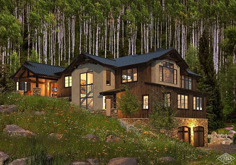 Rare new construction in Vail, this beautiful 4-bedroom mountain modern home is ideally situated in a quiet East Vail setting, set back from the road and nestled in the aspens and backing to National Forest. A Scott Turnipseed designed home built by Desmond Homebuilders, the primary side features an open design, gourmet kitchen, hearth room, private master suite, and luxurious outdoor living spaces with impressive mountain views.