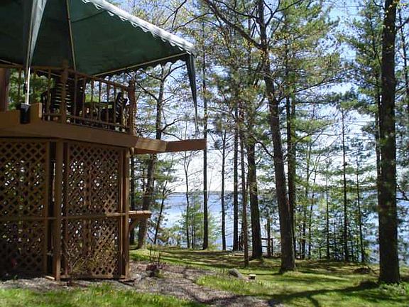 Picture book setting on North Twin Lake! As you enter the property you feel like you are in a park..This 3 bedroom , 2 bath home is located on one of the Northwoods Premier fishing lakes offering 200' of sand frontage. The main level offers 2 bedrooms, 1 bath with stunning views of the lake from the kitchen, dining room and living room which also has a wood fireplace. The walkout lower level living has a family room, 1 bedroom,1 guest room bath and a kitchenette. Forced air natural gas heats the home; and both 2 car plus garages which is optional. The first garage is 23' x 28' and the other attached garage offers 10' ceilings and is approximately 30' x 23' There also is electric baseboard heat and a large lakeside deck.