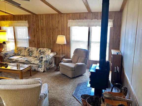 Located on an extra large lot in Pinetop Lakes Mobiles. Immaculate bright and open. Split bedroom floor plan with many upgraded features. Nestled in the back of a Cul-de-sac, beautifully treed lot with covered patio in the back and skylights. Enjoy the park like setting with a gas fire pit on an extended patio. Being an oversized lot for the area lends itself to more privacy in the back. This home has had one owner and shows pride of ownership throughout. Skylights, vaulted ceilings, walk in closet, built in china cabinet and desk area, 2x6 double trussed roof, wood stove, natural gas heat and much more! Gas plumbed outside for bbq. Being sold furnished and is move in ready! Recreation center privileges.