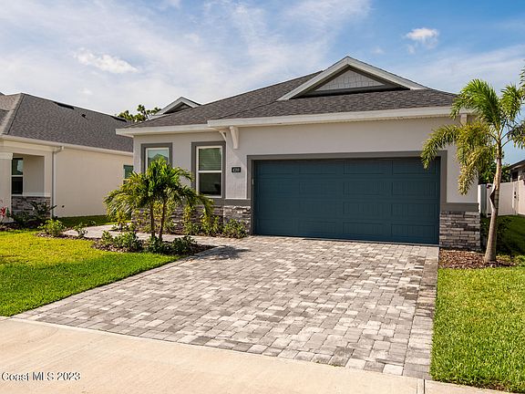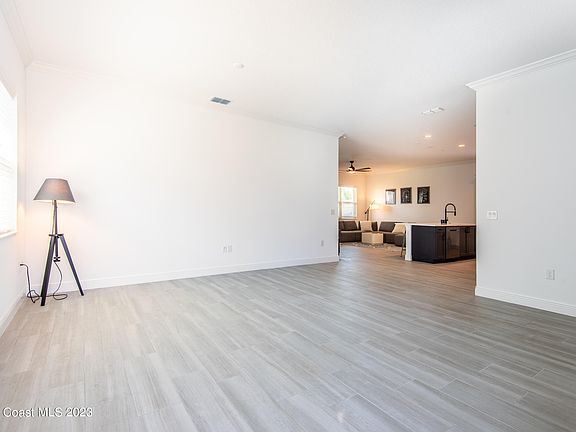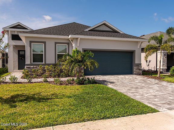 Come see this briefly occupied new construction home built by Lifestyle Homes one of Brevard's top builders. You'll find all the upgrades here. 8 foot upgraded 6 panel doors throughout, crown molding, luxury baths, upgraded kitchen including black SS appliances and quartz countertops. The Tahitian floorplan flows wonderfully welcoming you into an open living room that brings you right into the spacious kitchen and family room. Sliders provide to options for back yard access as well as bring in lots of natural light. Eber Cove is a fantastic new community in a booming area of West Melbourne. You'll find everything you need nearby including A rated schools and quick and easy access to the beaches.