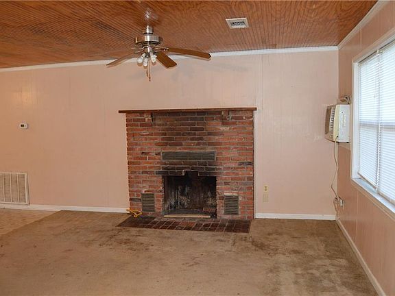 Three bedroom, 1.5 bath with open floor plan. Beadboard ceiling in living areas. Non-functioning fireplace in living room. Stained cabinets in kitchen. Spacious laundry room with door to back porch. Bonus/second living room which could be used as 4th bedroom with the addition of a closet. Master bedroom has attached 1/2 bath. Wall heater is backup heat. House has central heat/air. .8 acres provides plenty of space for shop or a garden