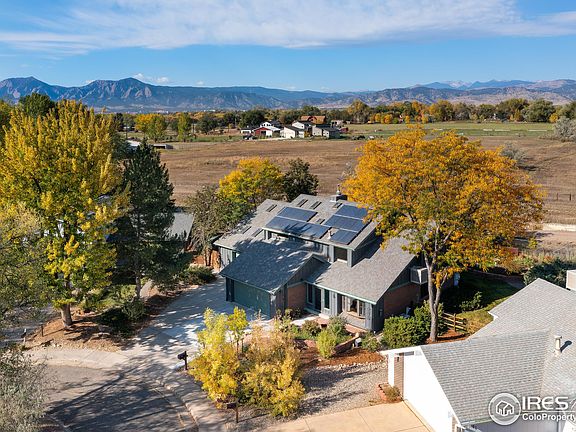 Just minutes from Boulder Country Club this 4 bedroom, 3 bathroom 2-story home is nestled on a huge .29 acre lot in Gunbarrel Greens that backs to farmland and boasts views of the Foothills and Flatirons from the second floor! Beautifully landscaped with stacked flagstone planters, mature trees, a flagstone patio with seating area, and is an absolute gardener's paradise with raised planting beds, and a greenhouse with garden shed! Enjoy the open floor plan with large living room and dining room areas, a family room with wood insert fireplace, and an eat-in kitchen with breakfast nook all with gleaming hickory floors! An addition to the residence added a huge second floor recreation/sunroom, with tile floors and skylights, a main floor guest bedroom, and a massive workshop that doubles as a 2-car tandem heated garage! Energy saving features include updated Andersen windows and patio door as well as a 5.0 kilowatt leased solar PV system that was installed in 2013. Tons of potential in a coveted neighborhood with a fabulous setting - bring your imagination!!!