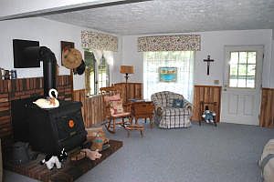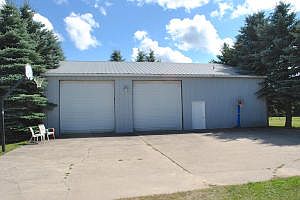 Charming Farmhouse and pole barn on 3.45 acres features living/dining with open kitchen, plus large family room or bunk room, main floor laundry, 1.5 baths in main house, adjacent 48 x 56 pole barn features two additional bathrooms and loads of space for vehicles, boat/RV and more! Tucked in among beautiful blue spruce trees, just around the corner from Big Lake public boat launch. (More...) Plenty of room for nice garden, too!