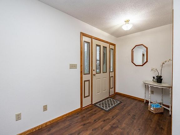 Spacious ranch home featuring large rooms, main level laundry and covered porch in a private neighborhood. All appliances stay. Ready for you to move right in. Large lot 0.36 acre. Oversized 2 stall attached garage with heater and work benches. Main level primary bedroom is huge and can easily accommodate a California king with large side pieces and features double side-by-side closets. Striking newly installed hardwood floors. Cozy gas fireplace greets you in the living room. Lower level rec room is partially finished features a wood burning stove and a conforming third bedroom with a walk in closet- just needs carpet to finish it off. Large closets throughout and spacious storage room in the lower level. LL is stubbed for full bath too! Easy access to the Trueblood Outdoor Recreation Center and Trails. Quiet cul-de-sac with fast access to everything. Agents - overlapping showings allowed.