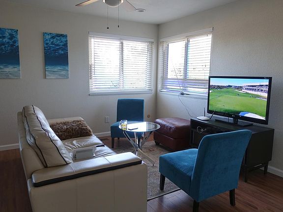 3 bedroom, 2 bath 1060 sqft. One story/ranch with large patio facing the open space and the creek. 100% remodeled. Maximum 3 unrelated tenants. GREAT LOCATION next to a bike path, bus, CU Research Park, Foothills Pkwy. DESCRIPTION.. 3 bedroom, 2 bath ground floor end unit. (Large partially fenced patio which faces east and opens to sprawling lawn and the creek with bike paths. This is a unique layout, unlike any other in the complex. The townhome is all updated inside. No carpet. Wood and tile throughout. The kitchen is all-new, opened up, with high end appliances and granite island. The lighting is all-new LED, dimmable recessed lighting throughout the living space, under cabinet lighting, dimmable pendants, ceiling fans in every room. Central A/C! GREAT LOCATION...Convenient southeast Boulder location, quick commute to Denver * Blocks from CU campus, steps from the new Biotechnology building * 2 miles from Pearl Street Mall * Instant access to trails, bike paths open space and public transportation * Fantastic private access to open space for lounging on the lawn or playing with your toddler * At the end of complex so no car traffic * Clean and private neighborhood outdoor pool with wide open views of the Flatirons. GREAT VALUE... Water, sewer, trash/recycle/compost included in rent * Attached covered carport parking for 1 car, plus off-street parking available * Full-sized brand new washer/dryer with separate laundry room KITCHEN FEATURES... Samsung stainless appliances including: smooth cooktop and self cleaning convection oven, sensor cook microwave/hood, counter depth French door fridge with ice maker, super quiet dishwasher * modern cabinets with nifty drawers and storage solutions * Very open living/dining/kitchen floor plan * Granite countertops with plenty of prep space and bar open seating * Deep stainless sink with pull out faucet. BATHROOMS.. One bathroom features a shower the other has a bathtub. The vanity cabinets are modern with large drawer storage. Bathrooms are equipped with modern tile, mirrored medicine cabinets, quiet fans and LED lighting. ADDITIONAL ITEMS INCLUDE...Recent energy efficient insulation * New efficient furnace, ceiling fans in every room * Large, high-efficiency double-paned windows * Sliding screened doors to the patio * Wood laminate floors throughout * Master suite with large walk-in closet and attached access to own bathroom with a shower * Second bedroom is smaller, has lovely view of open space and has a spacious walk-in closet * Third bedroom is smallest, has a lovely view of the open space and a large closet with sliding mirror doors. * Screen door at entry. * Handy coat closet at entry and additional linen closet in hallway * Tasteful interior paint color * patio partially fenced only LEASE TERMS - Available 8/1/2025 for a 12 months lease. FURNITURE - Beds - the bedrooms are equipped with one queen bed in master, and full size beds in the other two. Fully furnished with quality modern furniture. What you see in the photos is included in the rental. Additional furnishings available. Kitchen fully furnished. ADDITIONAL RENTAL FEATURES.. Ground level ranch with attic and crawl space. 3 conforming bedrooms Walk-in closets Master bath Second full bath External Storage Space Private end patio with sliding door access LED lighting COMMUNITY FEATURES.. Shared pool Off-street parking Covered parking Facing Open Space Owner pays trash, sewer, water, HOA. NO pets.