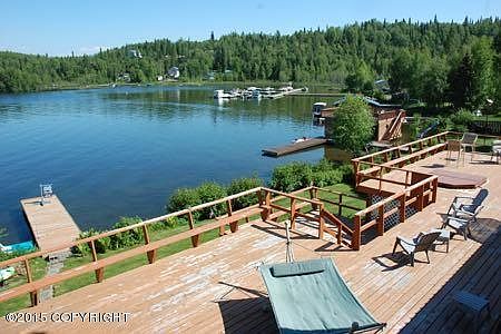 Spectacular lakefront living at its best!! Perfect home for enjoying Big Lake, with stunning views of the lake and mountains, a huge deck, and plenty of windows! Large kitchen, hot tub, dock, master suite, office, and roomy garage. Quiet area but not too far out. Starboard Cove membership includes boat launch, and boat storage
