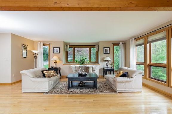 A rare find! Beautiful custom built home located on 4+ acres lot with breath taking panoramic views and a fully functional heavy duty detached garage, ideal for car enthusiasts or in home business, add rental propertyabove garage. Spectacular custom built Contemporary home offers a charming open concept floor plan. floor to ceiling field-stone fireplace. Hardwood floors, ceramic tiles and granite throughout. Spacious rooms and great outdoor living space make it a great place to entertain. Many updates include kitchen cabinets, bath cabinets, windows and carpets. Mostly hardwood on lower level, with tile. Incredible master suite with cathedral ceilings, Jacuzzi tub and walk in closet. The Detached 2 story garage has accessible garage doors on both levels. Built for year round use, fully insulated, heated and plumbing. Air compressor, wired for machinery use. This oasis can be your new home great commuter location. Close to highways, restaurants and malls.. A STEEL..