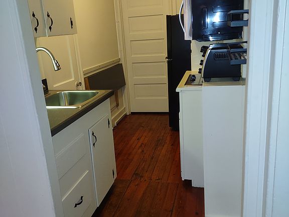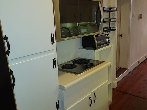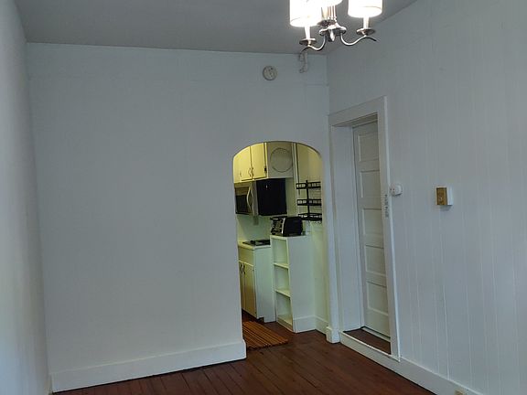 Small 1 bedroom apt. with private entrance on first floor. Unit has 9 x 16 living room with wood floors, galley kitchen with convection/microwave oven, bath with tile stall shower, bedroom with closet and laundry/storage area in the private basement. Rent includes hot water, trash, water and sewer. Off-street parking in secure, gated lot available for additional fee. 1 year initial lease. 1 person maximum. No pets, no smoking. Tenant responsible for electric, including heat. Renter's insurance required. Storage of e-bikes prohibited.