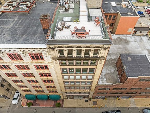 One of downtown's first business to residential conversions! Industrial feel with tons of space! Almost 2,000 square feet of living space. Open concept, huge island and a great space for entertaining. Building has 8 units and the elevator comes directly to the unit. Master bedroom has terrific morning light and is nicely sized. Penthouse level unit. This top floor unit has gorgeous views of Mt Washington, the Mon and the city skyline.