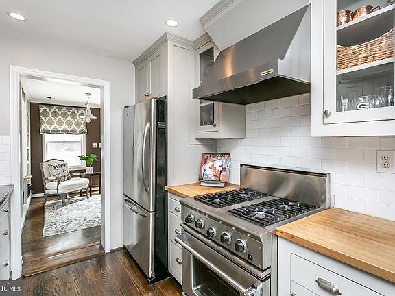 Over 2200 sf of finished space and in a prime West Towson location to walk to Towson restaurants, shops, and the YMCA. Recent updates include new windows, recently refinished wood floors throughout, and new HVAC system. The first floor has great flow and includes a living room with wood-burning fireplace, dining room, half-bath, kitchen with extra room for eating/homework/reading and large family room with windows, built-in bookshelves and access to the large deck. The master bedroom features an en suite bath and lots of windows and built-ins. Three additional bedrooms and updated bath on the second floor. The lower level is partially finished for play and entertaining. Separate laundry on lower level with lots of storage space and access to original garage that is enclosed & partially finished with French doors for an additional play/exercise space. And after all that there is still another garage as part of the three story addition. This house has it all!