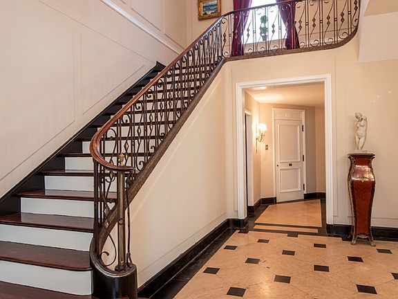 Designed as Philadelphia real-estate magnate Joseph J. Greenberg's private residence, "Sylvan Edge" is the definition of old world elegance and charm. This extremely rare and elegant Georgian Revival Estate home is filled with ornate detailing and craftsmanship unavailable in today's modern estate homes. The current owner has revived this estate to its former glory and this profound labor of love must be seen to be appreciated. As you pass the high-gated entrance with a full cobblestone Belgian block driveway and walled courtyard, you enter a home that was designed for the most sophisticated and worldly owner. Enter through the gracious central entrance hall with marble floors, curved stairway and gallery connecting you to a grand formal living room and dining room, each with full-wall salon paneling, hand-carved marble fireplaces, French Empire style chandeliers, and 4 French doors boasting views of the pool and magnificent grounds. The fabulous gourmet kitchen features new cabinets and appliances, restored original range hood over a Viking 8 burner range, new center island with white statuary quartz counter top, Italian farmhouse sink, new butcher block countertop in the butler's pantry and an adjacent breakfast room. Retire with your guests after dinner to the impressive wood-paneled library with spectacular built-in bookcases and a marble fireplace, or the comfortable sunroom with travertine floors, marble lunette fountain and bar area. Five French doors open to the pool and outdoor dining areas with relaxing views of the pond and grounds. This masterpiece of design was made for entertaining and parties in all four seasons! Follow the grand central staircase to the second level to find the incredible master bedroom suite with hand-carved marble fireplace, original painted frescoes, full marble bathroom with exquisite marble soaking tub and his and her dressing rooms; A princess suite with bathroom, dressing room and fireplace. 4 other bedrooms and 3 baths are found on the second floor, while a large, private balcony overlooks the pool and gardens. The third level offers 3 additional bedrooms and a full bathroom. The large lower level features outside access and could easily become a wine cellar. Set on an acre with 3-car garage, this house is just a 5 minute walk to Elkins Park, shops and restaurants, and speaks to the discerning buyer who demands old world elegance at every turn coupled with the ability to entertain large groups of family or friends.