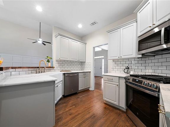 Welcome to this beautifully maintained 6-bedroom, 4-bath home in the sought-after Seven Hills community! The main level offers a spacious primary retreat with room for a cozy seating area. The en suite bath is a true oasis, featuring a soaking tub, walk-in shower, and double vanity creating the perfect place to relax and recharge. Two secondary bedrooms with a shared bath complete the main level. The kitchen, living, dining, and breakfast areas flow seamlessly together and open to the deck, ideal for entertaining. Architectural touches and natural elements shine throughout including a brick fireplace, stone countertops, wainscoting, and beadboard accents. Upstairs you’ll find a private bonus suite with a full bath that would perfect for guests, teens, or a home office. The finished terrace level features a wide foyer-style hallway with two open flex spaces, ideal for a game area, lounge, or office. There is a larger living room with a window, two additional bedrooms, a full bath, a workshop/tool storage space, and a large unfinished storage room. Beautiful stonework adds warmth and character. Double-door walkout to the backyard makes the basement feel bright and functional. Recent improvements include fresh paint, new flooring throughout, updated lighting, new deck boards and railings, & refreshed landscaping. Seven Hills is known for its incredible amenities including a resort-style pool, splash pad, playground, tennis & pickleball courts, basketball courts, clubhouse, trails, and green spaces. This is an unbeatable location near Publix, restaurants, and major routes to metro Atlanta and North Georgia. Photos include virtually staged photography.