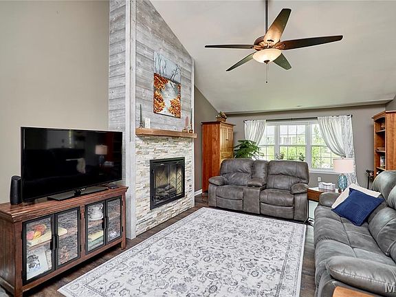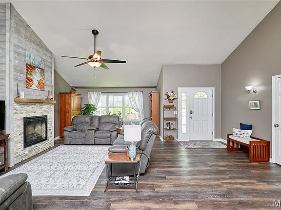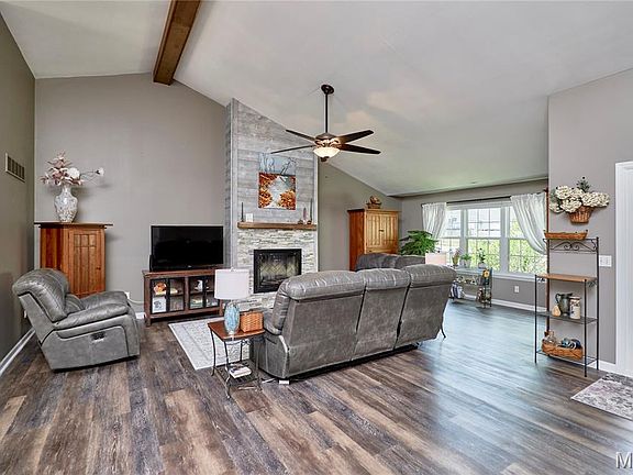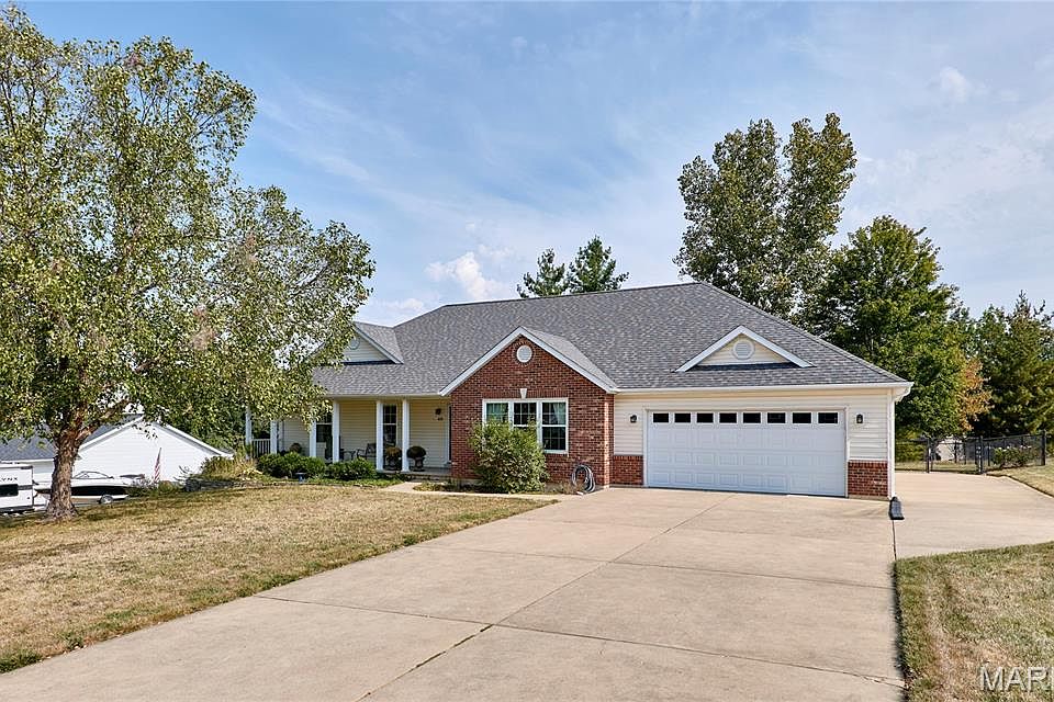 Impressive 1736 sq ft ranch style home with an abundance of upgrades just hit the market. Beautiful mature landscaping welcomes you to the expansive covered porch. Be warmly welcomed to the bright and open main living area embellished with newer low-e windows, beautiful newer floors, floor to ceiling fireplace, and wood beam. Dining area large enough to accommodate a sizeable table. The kitchen offers an extensive amount of granite counters and cabinetry, breakfast bar, some newer stainless appliances and ceramic tiled floors. The refrigerator and washer/dryer are included in the sale. Primary bedroom offers space for king bed and large furniture with walk in closet. Primary bath recently updated to include double vanity and gorgeous walk-in shower. Fabulous entertaining space in the finished lower level with wet bar, additional room perfect for office or additional guest, full bath, and ample storage. Delight in the oversized drive and oversized garage with additional parking pad that will accommodate a boat or RV. Fenced back yard with massive patio for your enjoyment. Conveniently located too so much! This may be the perfect fit to what you have been looking for.