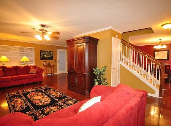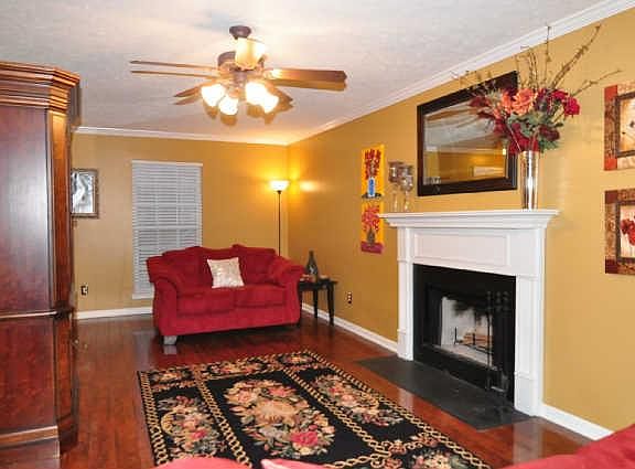 Wonderful family home-2,100+ sq.ft.-very comfortable living! Hardwd flrs complement spacious Living Rm w/fireplace & Formal Din! Kitchen w/Breakfast nook! Master offers two walk-in closets, trey ceiling, spacious bath! Large Bonus Rm! Community Pool!