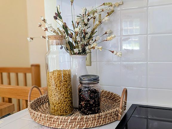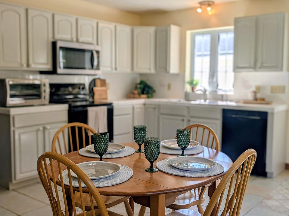 Freshly painted kitchen cabinets and new hardware. All the little handyman details have been taken care of, making this home move in ready!!