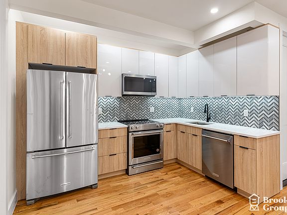 Brand new Penthouse Residence available for immediate move in. Be the first to live in this thoughtfully designed 3 Bedroom , two bathroom home, featuring a spacious private terrace and brand new high end appliances , offering both open-air tranquility and elevated views. Inside, every detail has been considered for comfort and convenience. Enjoy Mitsubishi Electric split-system climate control in all bedrooms and the living area, hardwood flooring, modern lighting, ample closet space, and an in-unit washer and dryer. At the heart of the home, the open-concept chef's kitchen features a full suite of KitchenAid stainless steel appliances, including an electric range, refrigerator, dishwasher, and vented microwave. Rich wood cabinetry, elegant countertops, and a chevron-tiled backsplash complete the modern design with timeless style. The shared full bathroom, located off the main living area, showcases sleek chrome and brushed metal finishes. The primary suite includes an en-suite bath with a calming, spa-inspired palette and its own temperature control for personalized comfort. Just steps from Van Brunt Street's vibrant shops, cafes, and acclaimed restaurants, this home places you at the center of Red Hook's creative energy and tight-knit community.