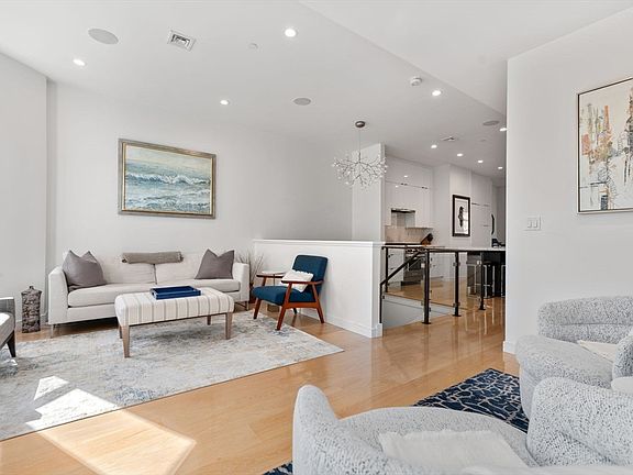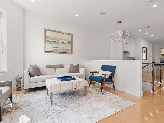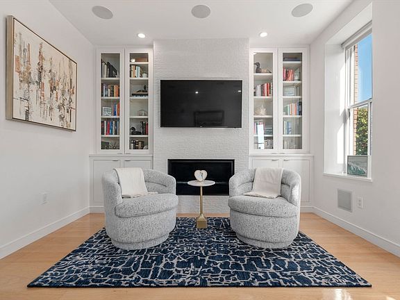 Renovated in 2017, this corner building, welcomes stunning light through double exposures. Sprawling across the entirety of the 2nd & 3rd floors, you will find a beautifully designed 3 bed/2.5 bath duplex. An interior flight of stairs delivers you from street level to the 1st floor of the property. This level is home to a front facing primary suite boasting a walk-in closet & stunning bath w/ double vanity & walk-in tiled shower. The 2nd bed provides access to 1of 2 private decks. Also located on this level are the 3rd bed, 2nd bath w/ tub, laundry & multiple storage closets All bedroom closets are outfitted w/ built-n shelving. A dramatic glass staircase leads to the upper floor. Enjoy the front-facing living area w/ gas fireplace & built ins. The rear of this floor is occupied by a gourmet kitchen, 1/2 bath, & generous dining area that leads to the 2nd private deck- equipped w/ water, electric, gas & awe inspiring views of the city. Central a/c, surround sound & a full parking