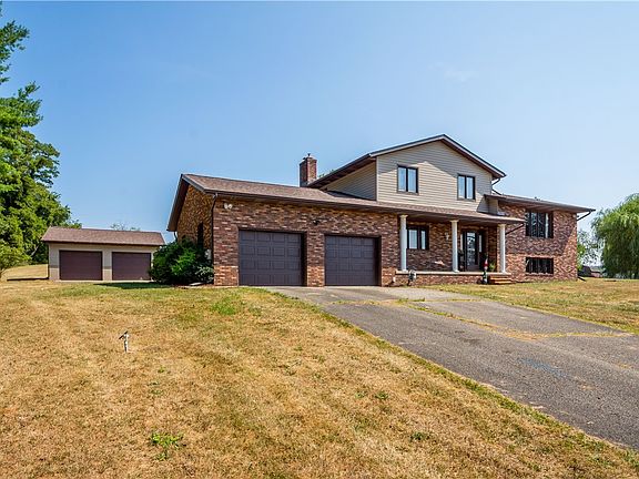 TALK ABOUT SPACE! 429 Constitution St has the space-INSIDE & OUT. This OVER 3300 sq ft home sits perfectly on a cleared 2.2 acre parcel! The paved drive leads you to the 2car attached garage (plus a 2car detached garage too (4 cars!)). You'll immediately appreciate the quality construction-it's hard to miss the good superb brick work! The covered front porch is great (you'll enjoy some wooded hill views from here). Inside-you will notice the new flooring throughout! Just off the entry is a main floor 4th bed/DEN plus a family room (w/wood burning fireplace) which connects to the back concrete patio plus has a 1/2 bath! Also, there are 2 more lower levels beyond this room (laundry room*3rd bath*game room*plus full basement). Steps off the entry take you up to another living room (new carpet), dining room, & kitchen (new appliances*updated counters*refinished wood cabinets). The upper level: master w/walk-in closet & updated ensuite, 2 more beds & updated bath (new carpet in all beds).