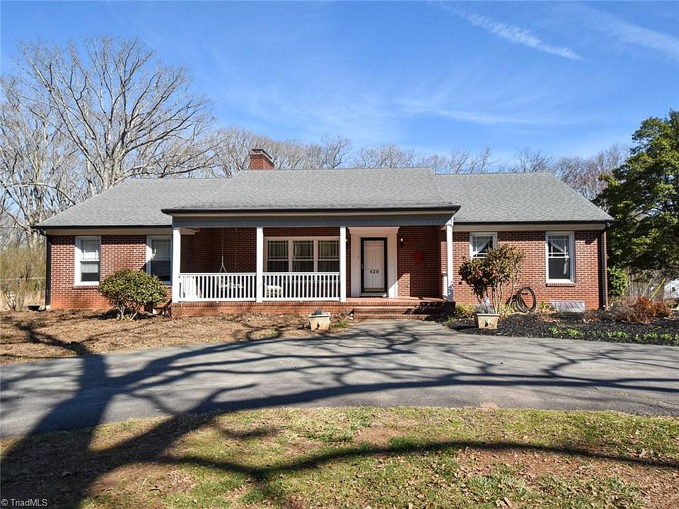 Amazing Brick Ranch with Partially Finished Basement situated on a Private 1.23 acre Lot located near the border of Kernersville & Winston Salem. Main Level with Beautiful Hardwoods offers Formal Living Room, Den with Fireplace, Eat In Kitchen, Dining Area, Laundry, Large Primary Suite, Hall Bath & Generous Sized 2nd Bedroom. Spacious & Sunny Kitchen with White Cabinetry & Tile Floor. Primary Bath with Jetted Corner Tub & Separate Shower. Formal Dining Space off Kitchen. Main Level Laundry Room. Elfa Closet System in Bedrooms. Basement Level with Private Office, Full Bath & Oversized 3rd Bedroom with Rustic Ceiling. Basement offers TONS of Storage Space, Workshop Area & Crafting Space. Garage offers 2 car TANDEM Parking. Large Detached Building "The Coop" has Running Water, Manual Overhead Garage Door, 120V Electricity & Power. Large Private Lot with Paved Front Circular Drive, Front & Rear Porches, Firepit, Ample Parking & No HOA. HURRY, this won't Last!!