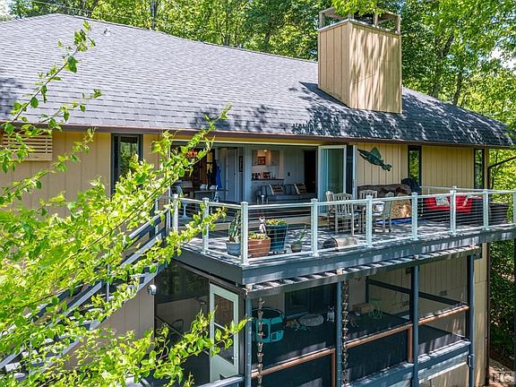 Amazing views outside the beautiful "Panoramic Doors" to the deck, are so inviting! The Panoramic Doors stack to one side, which brings the outdoors inside, very dramatic. Open these doors and let the fresh mountain air fill your home. Fantastic kitchen recently renovated and updated Bosch appliances and the red Bertazzoni gas range. Simply beautiful! Master and guest bedroom with ensuite bathrooms on the main floor and an additional two bedrooms and two baths on the the lower level. In addition the lower level has a family room with screened porch and open deck with steps to the fire pit. Owners have built a beautiful and spacious wine storage and tasting room. Take a glass of wine with you to the fire pit behind the house and enjoy the great mountain views and relax. A golf cart garage is a must in a golf community and this house has one. New roof in 2020. Rinnai water heater installed. Encapsulated crawlspace. Spring and summer will reveal beautiful foliage. Imagine yourself living here behind the gates of Wildcat Cliffs CC with views like this and all of the wonderful amenities of the club! Buyers who purchase a home in Wildcat Cliffs property are required to be members of the Club. Membership in Wildcat Cliffs Country Club is by invitation. Persons interested in membership are invited to inquire for current join fees and associated costs. Club amenities include a clubhouse, golf course, pool, tennis and croquet facilities, fitness center and more! See the U-Tube link to see the fun aerial fly through on the house. https://youtu.be/21KOFAjTAUI