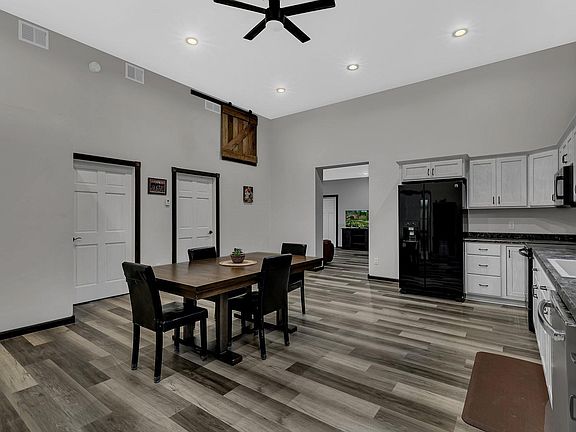 Privately set on 10 acres to get that country living all on one level living. A custom 4 bed, 3 bath (plus 1 flex/office room) over 2100sqft patio home. Garage features a 20x30 attached heated garage with 2 10x10 drive-thru doors and a 40x60 unfinished pole shed to store all your outdoor living needs. This property also features In-floor heating throughout garage, kitchen and living room areas. A key padded storm shelter/saferoom with a west facing covered patio overlooking the steel gazebo firepit ring.