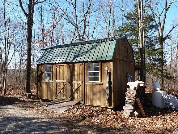 Nice private log cabin in the woods...pine floors, antique wood stove with 1 bedroom, 1 bath with bonus loft that could be used as second bedroom. This cabin has a double covered porches, open floor plan with natural edge walnut counter top and claw foot tub in bath/laundry combination. Nestled in 9.38 acre corner lot with large mature walnut trees and potential open view with the some trees removed. As an added bonus the property has a (256 sq.ft.) guest cottage. Dirsken storage building & metal carport. No Sign.