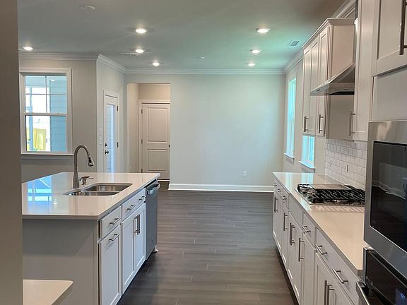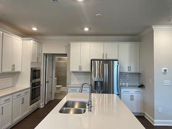 A covered front porch welcomes you into an open-concept living area full of luxury plank flooring & tall ceilings. kitchen showcasing a quartz-topped island , gray cabinetry. A subway-tiled backsplash stretches all the way to the ceiling & accentuates the sleek, stainless appliance package gas cooktop, a wall oven & more. The 1st floor also includes a rear-entry 2 car garage, a spacious family room, a dining area that leads-out to a covered side porch & a coveted bedroom with access to a full bathroom. Upstairs, you'll find a laundry room + 3 more bedrooms. The primary bedroom includes a tray ceiling, a walk-in closet & a luxury en-suite bath. Washer/dryer/fridge included.