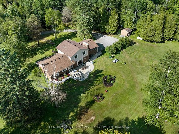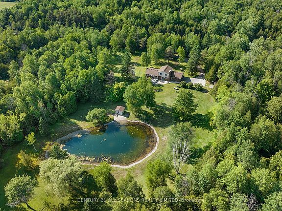 Location, location, location; This private 10-acre estate offers complete privacy and features its own natural pond, perfect for relaxation and escaping city life. Located just 15 minutes from Newmarket and 5 minutes from Uxbridge, this beautifully treed and landscaped property is ideal for the whole family. This home features 3 bedrooms, 2 bathroom and an updated kitchen with abundant natural sunlight creating a bright and inviting living area. The finished basement provides ample space for recreation. There's both a family room and a living room on the main level for added comfort. A wood burning fireplace in the family room with 8-foot glass doors is perfect to watch the snow falling or multi-coloured leaves in the fall while cozy and comfy by the fireplace. A paved driveway winds through the trees leading to the attached 2-car garage. Outside, the large back patio is perfect for entertaining. The property also includes a sauna at the swimming pond. This home has something for everyone to enjoy.
