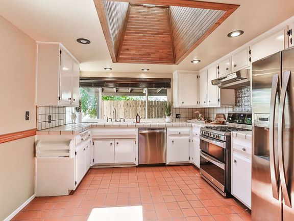 All the charm! Check out this 3 bedroom that sits on a nice big corner lot. Large living room with brick fireplace, sliding door to back yard and skylights. Kitchen features oversized windows, recessed lighting , huge skylight and stainless steel appliances.. refrigerator included! Beautiful updated bathrooms with solid surface countertops and tile showers. Backyard is a blank slate for you to make your own.. side access to park RV if desired. This one is too cute to pass up!