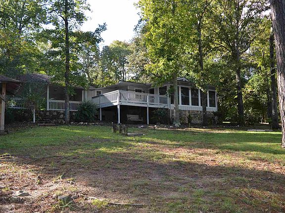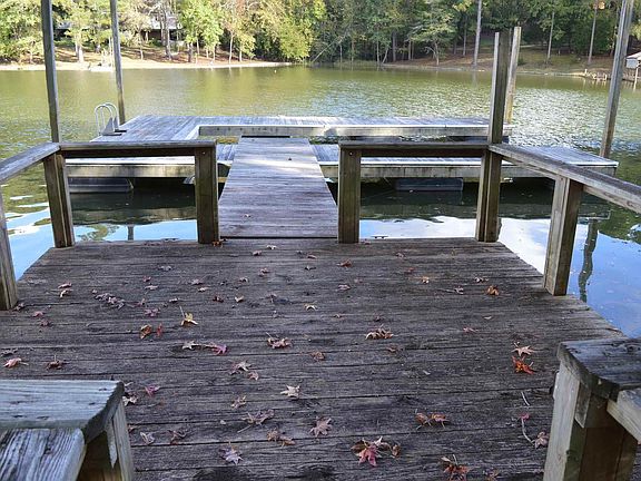 Cozy single level home just inside the mouth of a cove with big water views. Open floor plan with laminate hardwood floors throughout. Recent paint inside and out makes for a well kept clean home. Open great room, sunroom that has a barn style sliding door that allows for it to be guest room with two futons. Nice patio/porch on roadside. Nice deck on waterfront, country swing under deck, horseshoe pit, and gazebo for spending those lazy lake wateree days. Double carport attached, 2 24x30 detached garage. Nice dock with boat slip. Nice shore along waterfront. Deep water.