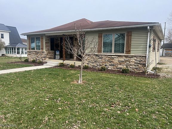 This beautifully updated 4-bedroom, 2-full bath, ranch-style home offers modern comfort, stylish upgrades, and open concept throughout. Upon entry you will be greeted by the new custom front door by Troyer Door (2023). The newly renovated kitchen (updated in 2023) featuring granite countertops and stainless steel appliances (all included) is an absolute showpiece. New carpeting (2023) from King Carpet in the spacious living room. Triple-pane energy efficient ProVia windows throughout home. Convenient first-floor laundry and an oversized heated garage with central air and a half bath. Basement is completely finished with a bonus room or possible 5th bedroom. The heated breezeway adds year-round usability. Pergula is used for sitting area in the summer and carport in the winter. Stonework to the exterior of home was also added in 2023. Move-in ready and packed with upgrades, this home is a must-see! Call today for a private showing!