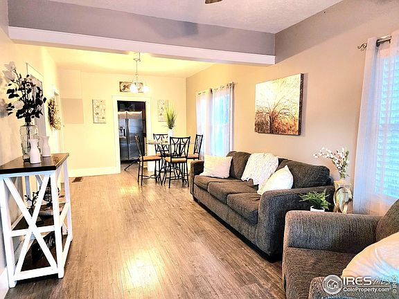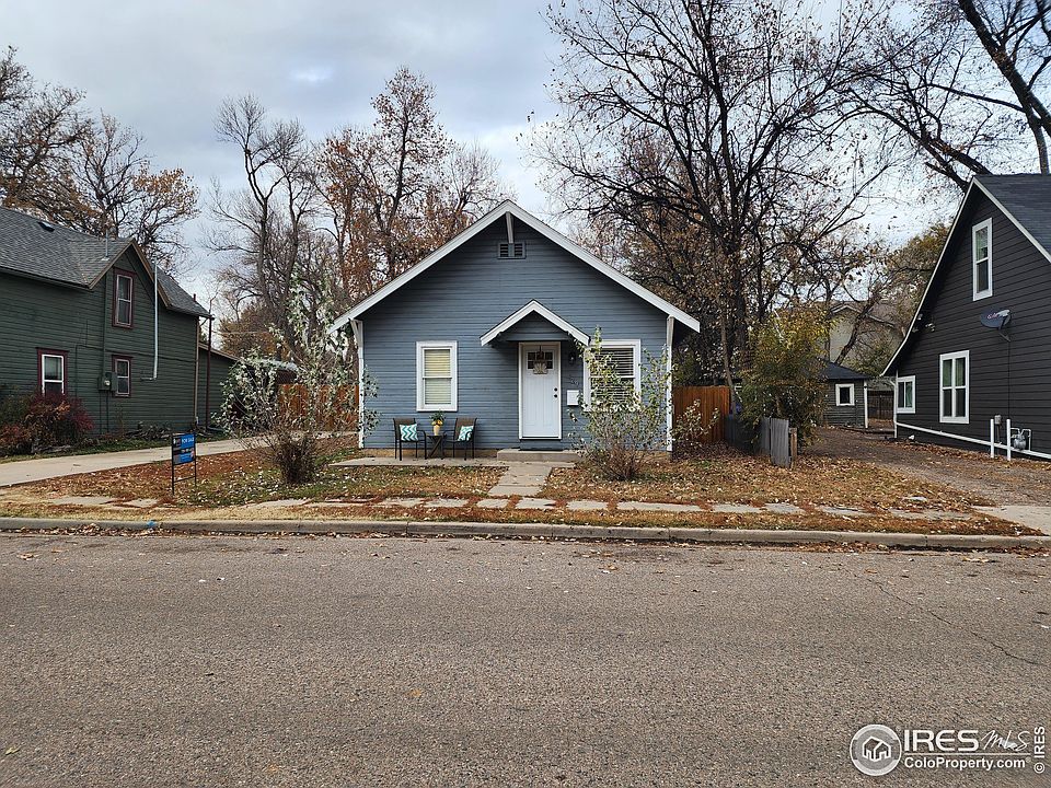 Fantastic opportunity to invest in the vibrant downtown Loveland! Cute, updated bungalow on a 1/3 of an ACRE and Zoned R3E! Inside you will find tall ceilings, new flooring, undated kitchen, with stainless steel appliances, and an updated bathroom! You'll love the sunroom/laundry room with washer and dryer also included! Plenty of storage space in the Basement/"crawlspace". Forced air heat and A/C. Step outside to this enormous, fenced backyard complete with alley access, a chicken coop, a large 12X15 shed and fruit trees! Newer wood fence on each end of the property with both single and double gates on each end! Bring all of your toys! No HOA or Metro tax to deal with here! Don't miss out on this fantastic opportunity! Schedule your showing today! The property would also make a perfect rental or development property! Build a multi-generational property, multi-family property, the possibilities are endless! Cash offer!