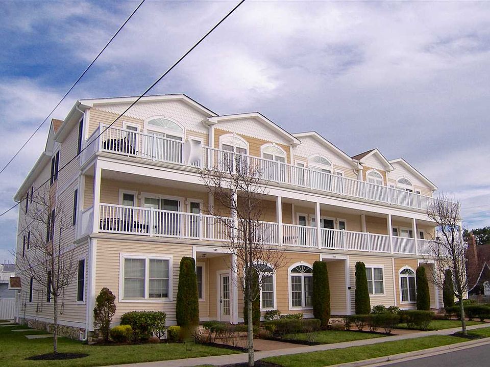 REMARKABLE TOP FLOOR CONDOMINIUM - A MUST SEE! Pride of ownership shines in this lovely unit, complex is situated on the corner of Ocean and 9th Avenues the location is ideal, just 1.25 blocks to the beach, close to Russo's Market, the Amish Market, the popular sea wall and much more. The condominium offers three bedrooms, two baths and a spacious open floor plan with plenty of windows to allow natural light to pour in. The living area features gorgeous hardwood flooring, and is bright and airy with cathedral ceilings - this is a very comfortable space for entertaining. A paneled sliding door with arch window above leads out to a generous deck with gorgeous ocean views, and this is the perfect perch from which to enjoy the Friday night fireworks display. The impressive kitchen offers sleek granite counter tops, a high end Bosch stainless steel appliance package and the hardwood continues through this space as well. The entire living area has recessed lighting and upgraded lighting fixtures. The hallway leads to the convenient laundry room with full size washer and dryer plus storage space, as well as the hall bath with dual sink vanity, full bathtub and ceramic tile flooring. The guest bedrooms are well sized, with one room currently having 2 double beds and the other having a queen bed. The master bedroom suite can easily accommodate a king size bed, and includes a beautifully appointed full bath with ceramic tile flooring, as well as a large walk-in closet. Outside the door to this unit is a nice landing entry way, and it is very welcoming. The main front door from the street level leads into the first floor foyer with easy access to the garage, which accommodates two car parking for this unit plus a storage room. The storage closet in the foyer area is also dedicated to this unit. The unit will be conveyed with partial furniture and decor, which was carefully selected to beautifully compliment this stylish unit. The HOA fee of $650/qtr. covers the cost of master insurances for fire, flood and liability, common area water and electric, lawn maintenance and the annual fire inspection. This is a small 6 unit association, and it is very well maintained. This condominium association is pet friendly for owners only, although this unit has never been occupied by pets. The current owners do not rent this unit, and it is impeccably maintained. However, it would be ideal for rentals due to its size, amenities and location. A few additional points to mention .... The carpeting in the common and gel coating of the decks is expected to be done by the end of the 2016 season. Neither of these improvements is expected to cause an assessment, as the association does maintain a reserve account. The air conditioning condenser and coil were replaced in August of 2015 (cost approx. $6,000). All area rugs and padding (which are upgraded with noise reduction feature) will be included in the sale and were new in August, 2015. Common area painting was just completed in early 2015. The unit door lock and thermostat can be remotely controlled through an existing security system, which the buyer has the option to maintain in their name. Please note that the square footage stated above was taken from tax records and should be verified by the Buyer prior to purchase.
