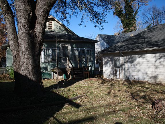 Two story home with fenced backyard, back deck, two-car garage, and screened-in front porch. House has the potential to have 4 bedrooms, or 3 bedrooms and a mudroom, or 3 bedrooms and an office; one bedroom is upstairs. Large living area and kitchen. Storm cellar accessed through back room (possible mud room or bedroom). Living room and one room have wood floors. Beautiful, dark wood trim. Front screened-in porch is large and nice. Back deck and small backyard with large shade tree and access to the two-car garage.