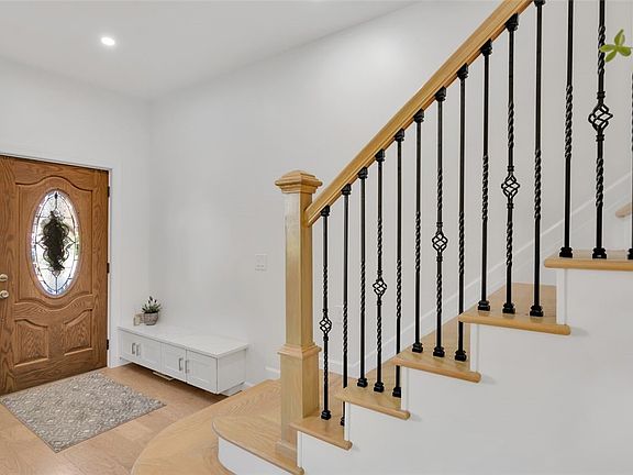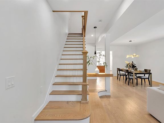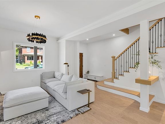 Rare opportunity! A renovated stunning 3-story features 4 beds , 3.5 baths, and a 2-car garage. In the foyer, you’ll be greeted by an open-concept living and dining area, floor-to-ceiling fireplace, unique lights and the newly expanded kitchen/ bar area, ideal for culinary delights and family entertainment. The kitchen features a large quartz island+ backsplash, solid wood soft close cabinets, stainless appliances + wine fridge. New deck with fenced garden, perfect for sunny days. On the 2nd floor, the new addition master bdrm. boasts 2 closets, tiled walk-in shower, custom glass door, double sinks and lit mirrors. Two other bedrooms share a main bath. A laundry area adds convenience. The 3rd floor is a suite with its own bathroom, skylight, and bonus space. Accents are wood floors, sturdy wooden /metal staircase. The basement provides ample storage, and the two garages in the rear are a rare find in the city. This meticulously designed home offers warmth, comfort, and elegance!