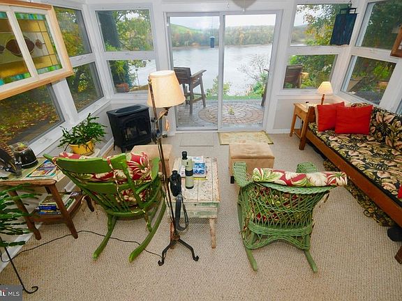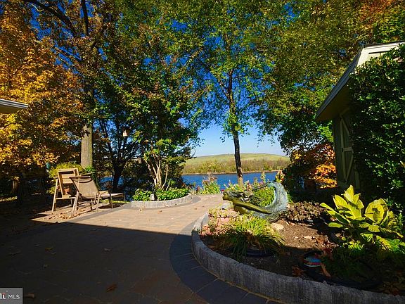Unobstructed waterfront property with outstanding water views and Riparian Rights. The property sits high above the river, so no flooding issue here. Extensive hard-scaped patio construction along the back of this property ties together the landscaping and serenity to enjoy nature's setting. There are interior light switches to operate the three floodlights that overlook the back yard, as well as a switch to operate hanging lights along the back of your house if you want to create additional ambiance. The front yard retaining wall constructed of professional hard-scaped blocks encases your off-street parking area. Lots of natural plantings and potted planters along the paver walkway offer great curb appeal to your front entry. As you enter this home into the very spacious living room, you will enjoy the natural sunlight through the large bay window, while the pristine hardwood floors carry over from the living room, hallway, and bedrooms and into the dining area where the river views can be seen. The living room, dining room, and the four-season sunroom have an open floor plan that allows you to get the maximum potential of your waterfront home. Enjoy the boats and watercraft and beautiful scenery right from your indoors, too. The kitchen offers a well-placed window above your sink, so the views are always with you in this home. There is a large pantry, that might allow for washer/dryer area if you prefer on the main level, or remain as its present use. Two generously sized bedrooms and the master bedroom that offers a walk in closet and master bathroom. The main bathroom has a linen closet and the master bathroom has a corner shower stall, completing the main level living area. The main water line from curb to house has been replaced so water pressure should be good! storage available with attic pull down stair access or the use of the large basement. Half of the basement is used as a woodshop and the built-in workbench will stay. The adjacent side is us