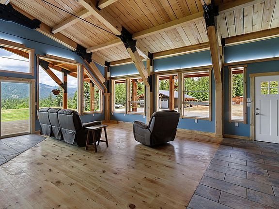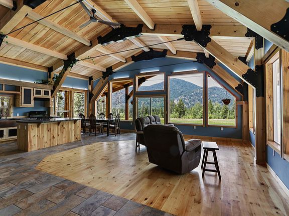 The North Idaho dream awaits...This stunning timber frame home offers an ideal blend of rustic charm & modern comfort w/breathtaking mountain views! Boasting 1,880SF of living space filled w/natural light, this 3bed/2ba residence is perfect for those seeking a serene lifestyle. Custom features throughout w/open concept living space w/mix of hardwood & tile floors, T&G ceilings, lots of windows to take in the views & slider to covered wrap around deck which is the perfect place to wind down at the end of the day. Kitchen w/concrete countertops, gas range & walk in pantry. Efficient wood burning stove & hydronic floor heat to keep you warm during winter months. Master suite w/access to deck & en suite w/walk in closet, dual sink vanity & dual showerhead in tile walk in shower. As an added bonus, this property features a guest apartment w/440SF of living space w/full kitchen, 1bed/1ba, providing a versatile space for guests or rental income. Situated on 4.93 acres w/southern exposure, room for gardens, old growth orchard includes cherry, plums & apple trees. Detached 46x42 enclosed shop w/30x10 lean-to & 16x46 lean-to off the back provide space for your vehicles, equipment, or workshop needs. Storage building, chicken coop w/run & woodshed included. Conveniently located a short 20-minute drive from downtown Sandpoint, you'll have easy access to all the amenities this vibrant community has to offer including boutique shops, gourmet dining, hiking/biking trails & summers on Lake Pend Oreille. Plus, adventure awaits just over 30 minutes away at Schweitzer Mountain Resort, where you can enjoy year-round activities. Just a short distance away is Mcarther Lake & nearby public lands provide all the outdoor recreation you could dream of!