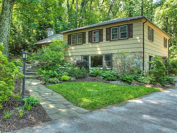 Get ready to fall in love with this 4 bedroom, 2 and 1/2 bath woodland retreat sitting on 1.15 acres just outside of downtown Wayne and a few miles from King of Prussia and the new Town Center. A natural flagstone path leads through a boulder hillside garden and into the entry level of this split level home. The living room entrance showcases a cozy fireplace with room for entertaining. Follow the refinished oak hardwood floors into the formal dining room complete with wainscoting and crown molding, a perfect accent for any dinner party or family gathering. Just off of the dining room is the ample sized kitchen featuring a double oven, stainless steel appliances, and tile backsplash and flooring. Avanza quartz countertops and triple casement window overlooking the wooded back yard are added touches that make this home move-in ready. Upstairs features a well-sized master bedroom and updated en-suite. Three additional bedrooms with oak flooring can also be used for an office. The second full bath has a double sink and has been completely gut-rehabbed in 2021. The lower floor consists of a half bath located off of a large walk-out den with beautiful hardwood floors added in 2018, unique natural stone walls and gas fireplace. Outside a spacious deck provides room for relaxing and entertaining and overlooks the wooded, private yard behind the home. The recently installed outdoor lighting allows for safety at night both along the front walkway and on the deck. Leaf Guard gutters and an Energy Star natural gas furnace equip this home for years to come. New 30-year roof in 2018. New driveway in 2020. It is done and the incredibly low taxes will have you smiling year after year.