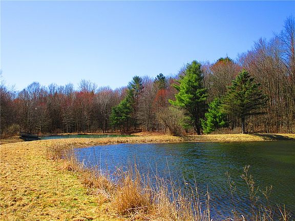 One level living on almost 38 acres, 2 ponds AND borders Gilbert Lake State Park! This 3 bedroom, 2.5 bath home sits above the road for privacy, views and nature. The kitchen with open concept has plenty of storage with great views and a walk out to the front porch overseeing nature! The master suite is a newer addition with 2 walk in closets. Both living room and family room have additional sources of heat. NEW roof (2022) for main house and new well pressure tank. The garage has an additional heated space for office or guest quarters and additional bay for storage. The ponds are wonderful for wildlife and feeding the fish, swimming or a nice paddle board! A nice wooded lot in the back and plenty of space for gardening and entertaining! Also includes parcel #190.00-1-27.00 for total acreage!