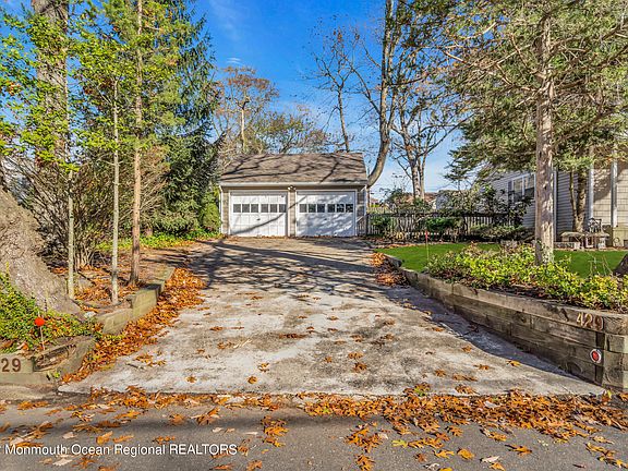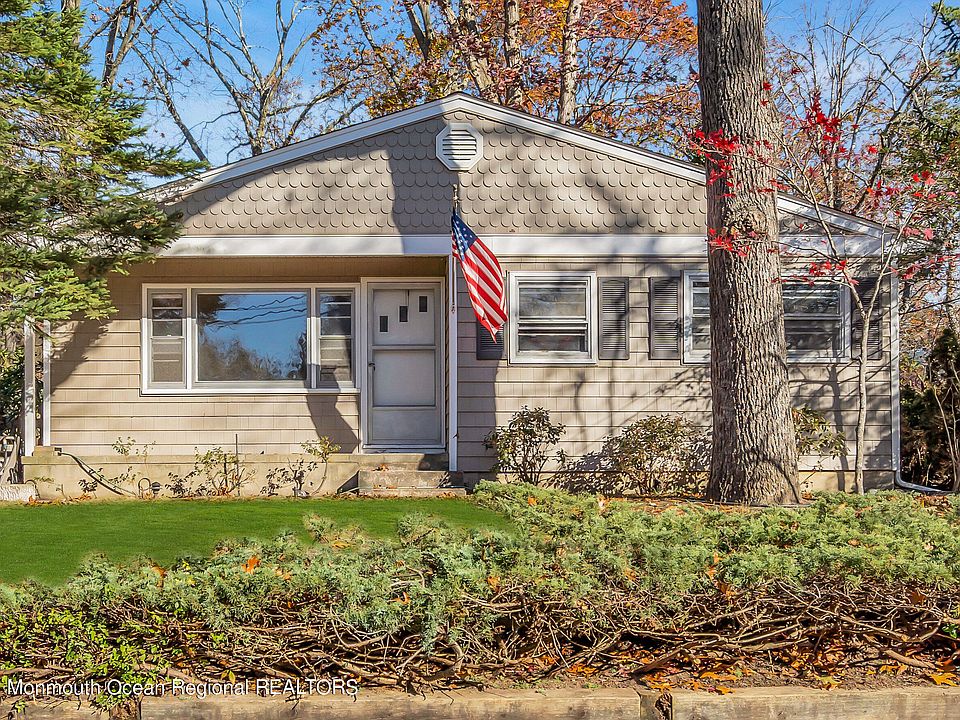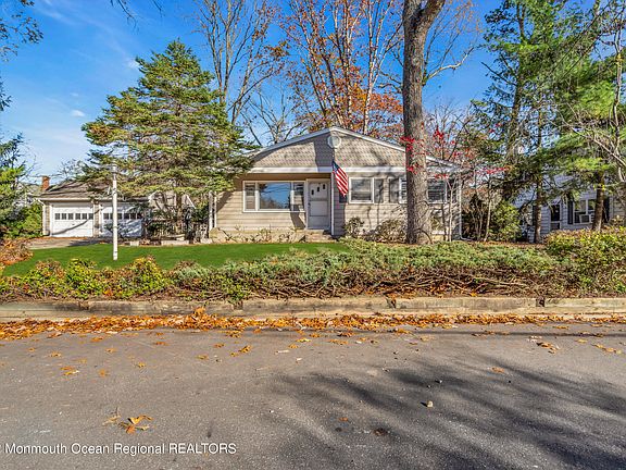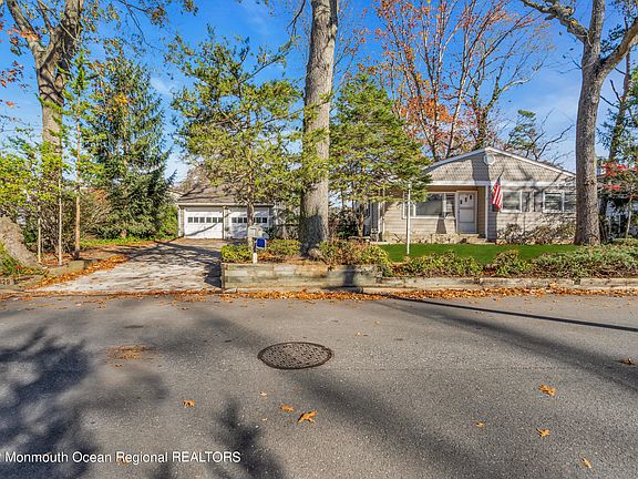 Bright & sunny Ranch on a wooded 100x90 lot with two car garage in sought after Shark River Hills. This cheery single level home was just painted, features low maintenance vinyl siding, a covered front entry porch and hardwood flooring in most rooms. It offers a large living room/dining room combo, kitchen with vaulted ceiling & skylight, stylish retro bathroom with shower in tub and three ample sized bedrooms. There is an oversized back deck with several entertaining areas, a double wide concrete paved driveway and detached two car garage, perfect for parking, storage, workshop or bonus space! The home provides lots of shade & privacy with mature trees, bushes and large Rhododendron flowering shrubs landscaping the property!