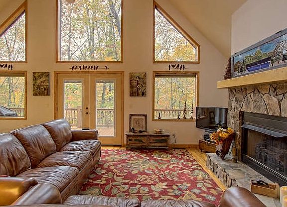 Just in Time For FALL in the Mountains! Charming Chalet without all the Wood Interior... Sheetrock & Wood Trim! Two Bedroom, Two Bath Cabin with Soaring Ceilings, BIG Windows, Lots of Natural Light and Open Floor Plan! Newly Renovated, Granite in the Kitchen with New Stainless Steel Appliances! Newly Upgraded Granite in Baths! Hardwood Floors, Rocked Gas Log Fireplace. Stunning Chalet + Approx 450 Sq Ft HEAT/COOLED Art Studio, In-Law Suite, or Potential Home Office - Newly Added Mini-Split! Main Floor Bedroom Could be used as Master but Upstairs Open Loft Bedroom is HUGE & is the True Master Suite with Adjoining Bath & Walk-In-Closet. Rocking Chair Covered Porch with Open Deck for BBQ'n with your Friends! Rental Potential. NEW HVAC. EZ Access, Paved Roads. Added Bonus: Transferrable Home Warranty & Fiber Optic Internet too! Come Enjoy a White Christmas in the Mtns!