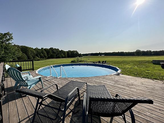 Stunning home in country sub-division near the new Marshfield interchange for easy access to I44. This is a home for friends, family and entertaining. Almost 3 acres +/- to play on, pool with deck and stone pavers, fire pit and large gorgeous deck overlooking it all. Covered deck is set up as an outdoor family room with TV capability. Large family room, dining area and kitchen combined with beautiful cabinetry and stone accent wall, double pantries, granite counter tops and huge island with seating. This home has so many features to mention, exposed beams, beautiful stained wood ceilings, French doors, arched doorways, wood floors, and large windows. Truly a unique and special home. Finished walk-out basement with a large living area, bedroom and private bath. You will love the large John Deere room for your equipment. Carpet, luxury vinyl plank in basement, and new roof 2022.