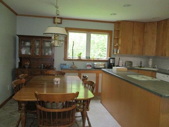 Charming 3 Bedroom, 2 bath home with 3+ acres with trees for privacy and level cleared lawn for play, gardening or entertaining. The house has a NEW BOILER, newer siding, Metal roof, NEW 2nd floor bathroom, updated kitchen and new flooring. The kitchen features a large center isle and attached dining room. There is a full bath off of laundry, mud room with a ton of room for crafting or storage. The Den with closets could be a first floor bedroom. New flooring in entrance way, living room and den. Upstairs there are 3 bedrooms and a brand NEW renovated full bath. The outside has a stone patio overlooking the back yard. There are trees on both sides of the house for your privacy and enough land on each side to roam. A level clearing for gardening or a game of volley ball or soccer. Basement has lots of storage and room for a work shop. House comes with a generator.