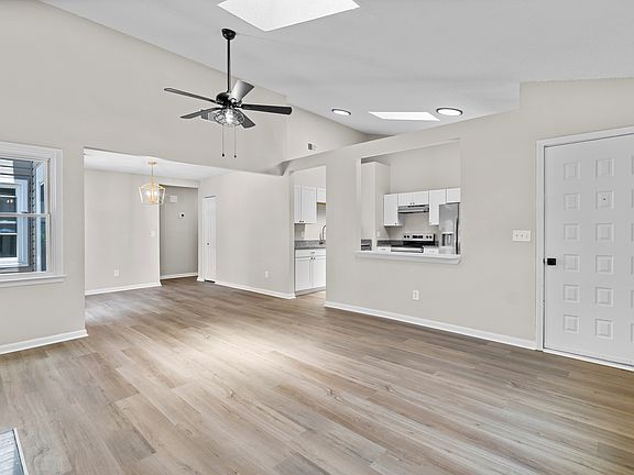 Welcome to a beautifully renovated 3-bed, 2-bath home that perfectly blends comfort and style. This fully renovated property features fresh paint, new flooring, and modern finishes throughout. The open-concept kitchen boasts stainless steel appliances, granite countertops, and elegant gold fixtures. Natural light comes in through skylights. The spacious living area offers a cozy fireplace and ceiling fan. An enclosed garage provides versatile bonus space ideal for a home office, studio, or additional storage. Step outside to a generous patio and partially fenced backyard. Washer and dryer connections in the bathroom. Three spacious bedrooms with plenty of closet space and overhead fans. This move-in ready home has been thoughtfully upgraded and is ready for you!