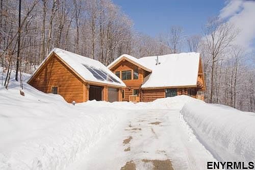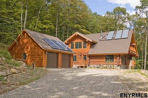 H1369416 GO GREEN in this Custom 3Br 2 Bath Vancouver Spruce log home on 7.88 private acres. Gorgeous woodwork, stone fireplace, 2 car garage. Gourmet kitchen with granite countertops. Sprawling property with a brook. Solar powered with backup LP generator.