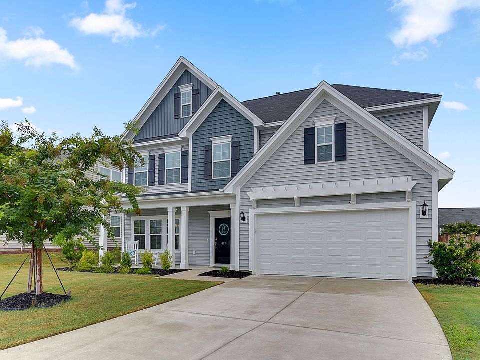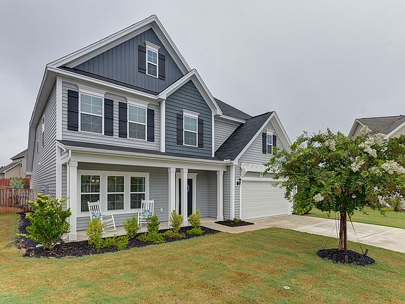Welcome to this five bedroom, three and a half bathroom home with a large bonus room and the MASTER ON THE MAIN floor located on a cul-de-sac lot. Walk through your front door and admire the five inch hardwood floors that run through the formal dining room, family room, kitchen and eat in. The kitchen has a gas stove, stainless steel farmhouse sink and it opens into the family room, perfect for entertaining. Granite countertops and white shaker style cabinets are in the kitchen and all the bathrooms. Upstairs there are four secondary bedrooms, two full bathrooms and bonus space. You will love the large fenced backyard with a professional landscape design and covered porch with fan. Don't miss this chance to be a part of the Persimmon Grove community with sidewalks, pool and stocked pond. Owner is a licensed real estate agent. Buyer's agent welcome. **Call or text 803.556.4332 for a showing**