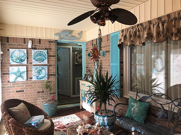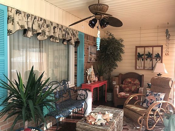 This well maintained three bedroom, two bathroom brick home has so much to offer. Beautiful eat in kitchen, formal living room and comfortable family room/den. Large laundry room with lots of cabinet space. There is a lanai on the front and a large patio out back for outside entertainment. This all electric home, except for the tankless gas hot water heater, has new windows, updated electric box, sprinkler system and a security system. Two sheds, workshop and triple carport provides lots of storage.