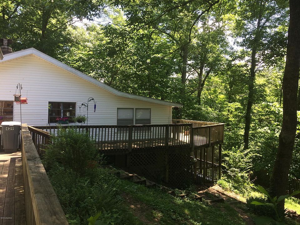Lakefront home with Fireplace on Rough River with 2 Boat Docks, 2 Car Detached Garage, 25 X 40 Metal Building, 2 smaller storage buildings, Large wrap around deck with Hot Tub, Nice Botanical Yard, also has 8 lakefront lots.You can drive your vehicle right down to the lake.