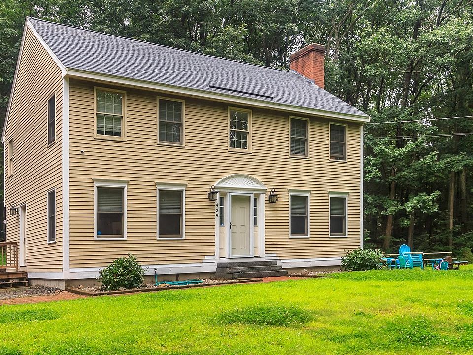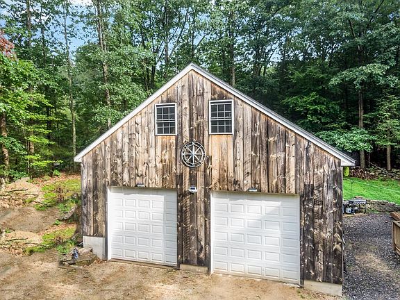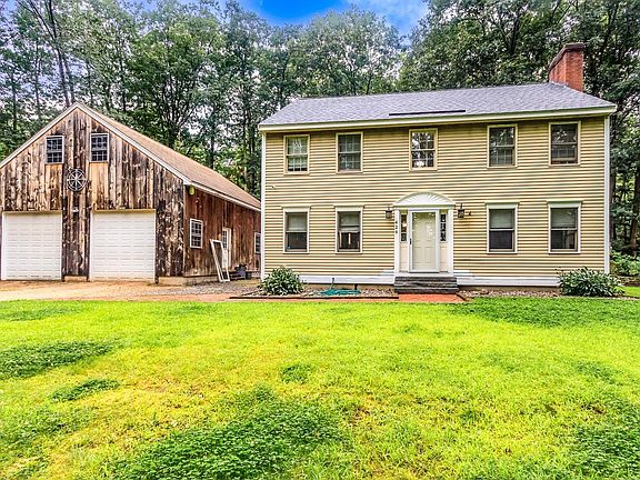 Traveling down tranquil Mason Road in the idyllic town of Milford you are greeted by mature trees, rock walls and the soothing sights and sounds of nature. Then you come upon it. A better than new colonial set on a beautiful, private lot. This home has been lovingly updated with many new features including its brand-new kitchen; including cabinets, center island, stainless-steel appliances and double wall ovens. The updated first-floor half bath also hosts the laundry for extra convenience. There is a new front door with side-lights and new radiant floor heating in the large sunroom. The first floor also has a front-to-back living room with fireplace and pellet stove, a dining room off the kitchen with hardwood floors, and LVP in the kitchen and sunroom. Upstairs is a small, open landing overlooking the two-story foyer along with the bedrooms. The primary suite has a huge walk-in closet with scuttle access, full bath with jetted tub, and here's the bonus: it's very own fireplace with wood stove! You know you've always wanted a fireplace in your bedroom ... now you can have it! Additionally, there are two more bedrooms and a full bath they share. All this surrounded with warm and efficient forced hot-air heat. Outside is a lovely yard with a deck and play area. Additionally, there is a detached, oversized 32x26 commercial-type garage with 200V electrical and auto lift for any of you car enthusiasts. This home is now looking for its next love story. Will it be with you?